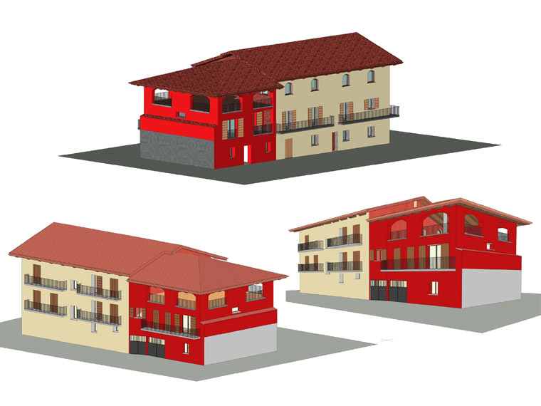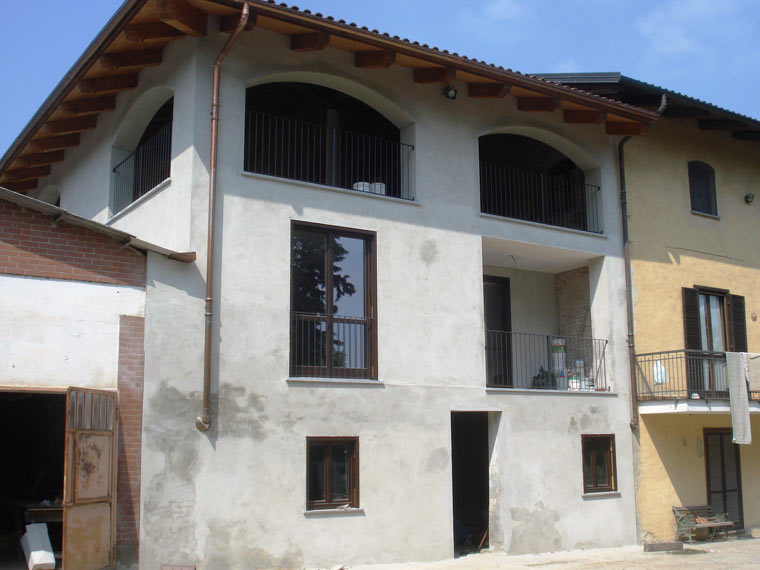 Il progetto, individuato in area collinare a vincolo paesaggistico, riguarda un ampliamento di un fabbricato rurale e la sopraelevazione con creazione di un loggiato panoramico. L'edificio in ampliamento riprende le caratteristiche del cascinale esistente e le sei arcate di chiusura del loggiato richiamano la finestratura centinata latistante. La progettazione di questo intervento è stata realizzata con modellazione 3D ( autodesk Revit) per fornire al committente l'immagine finale dell'intervento e verificare le colorazioni di facciata più adatte al contesto del costruito.