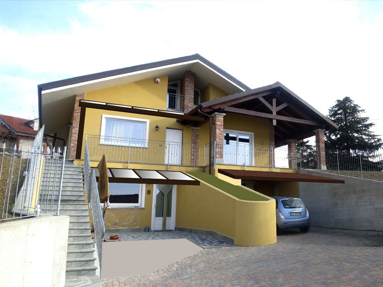 Il progetto riguarda la realizzazione di pensiline di copertura contro le piogge di stravento da realizzare in un'abitazione residenziale sita in zona collinare a vincolo paesaggistico.