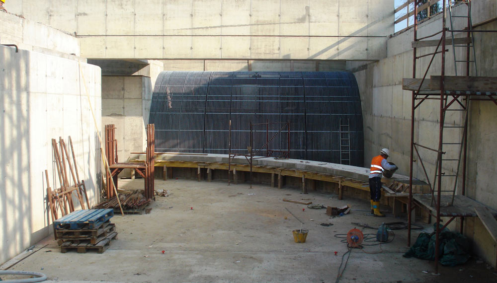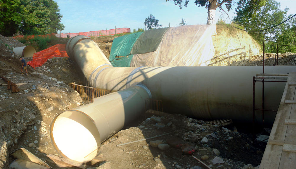 Molto interessanti le soluzioni innovative introdotte dalla committenza che sono state integrate nel progetto strutturale: i paratronchi, lo sgrigliatore a pettine semicircolare, il sistema di bypass della condotta.