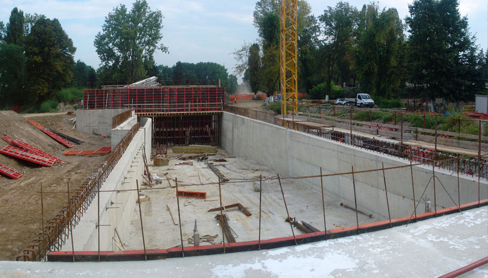 La progettazione strutturale del progetto concepito dallo studio R&C engineering ha comportato la risoluzione di alcuni aspetti critici collegati alla realizzazione di opere sotto falda e particolarmente sollecitate dalle spinte idrauliche.