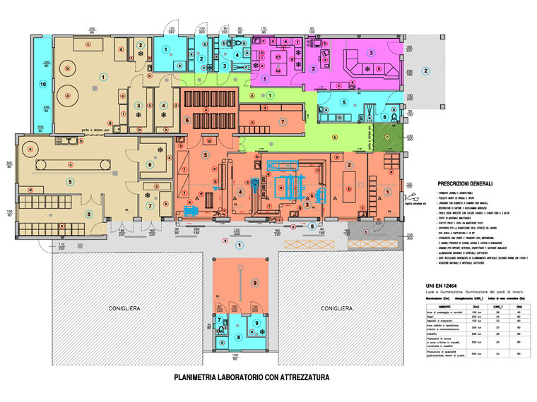 La progettazione è stata particolarmente delicata per adattare la nuova struttura ai fabbricati esistenti e per soddisfare le esigenze igienico-sanitarie legate alla trasformazione di prodotti alimentari.