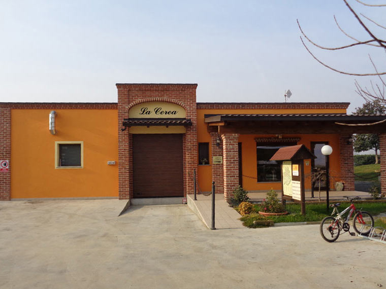 L'architettura della facciata, con semplici rifiniture in mattoni paramano, ben si integra nel contesto rurale della azienda agricola.